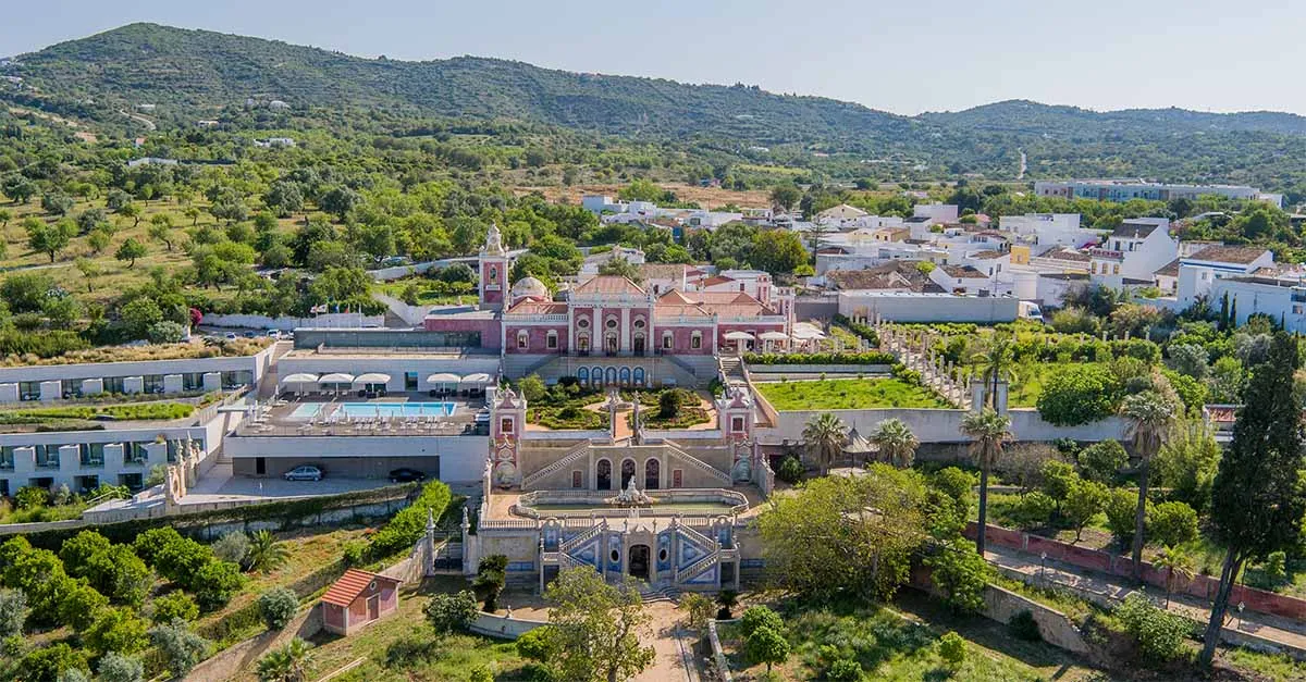 In the rolling citrus groves outside Faro, pretty-in-pink Pousada Palacio de Estoi is a gem of a hotel set in a former palace, with ornate rococo lounges, formal gardens, bedrooms with terraces in a contemporary wing and a rooftop pool looking out across lush countryside.