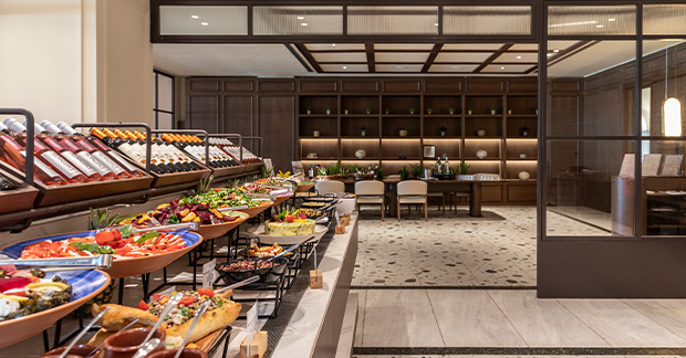 Main dining venue Naiada – open for breakfast, lunch and dinner – is a casual affair with live cooking stations, a children’s buffet, fresh salads and desserts.
