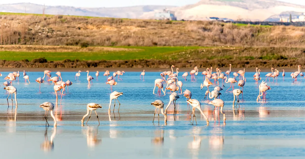 Flamingos at Larnaca’s salt lake. Image credit: Kirill Makarov