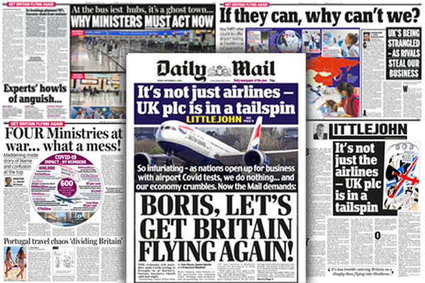 The Daily Mail has become the latest national newspaper to call on the government to introduce airport testing for Covid-19 to reduce quarantine restrictions.
