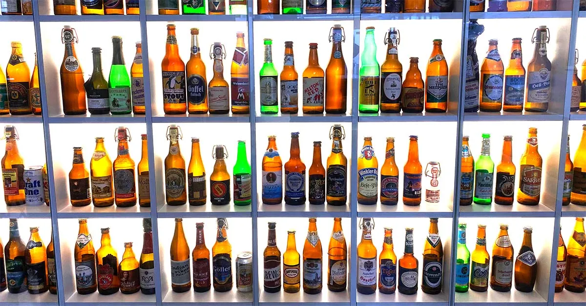 A wall of beer bottles in the Germany Hop Museum. Image credit: Tamara Hinson