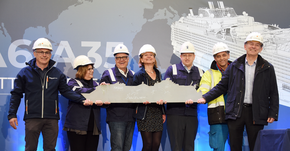 Representatives from Royal Caribbean and the Chantiers de l’Atlantique shipyard attended the steel-cutting event, including Jason Liberty, president and chief executive of Royal Caribbean Group.