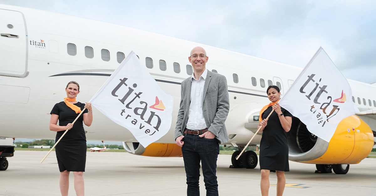 Pictured: Ben Davis, product director, Titan Travel, with air stewards.