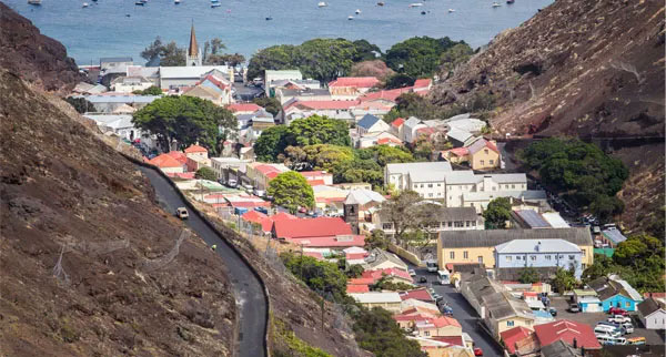 Jamestown (pictured) is the island’s capital and focal point. Little more than a single street bordered by some fine Georgian buildings, it lines a valley flanked by imposing rock, running down to a beach-less harbour affectionately known as ‘the Seaside’, where Atlantic waves crash and spray.