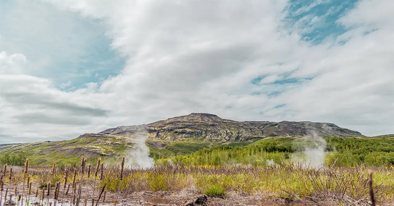 En route, we stop at The Secret Lagoon, the oldest swimming pool in Iceland, which has developed considerably from its humble beginnings in 1891 and now has modern facilities and a cafe.
