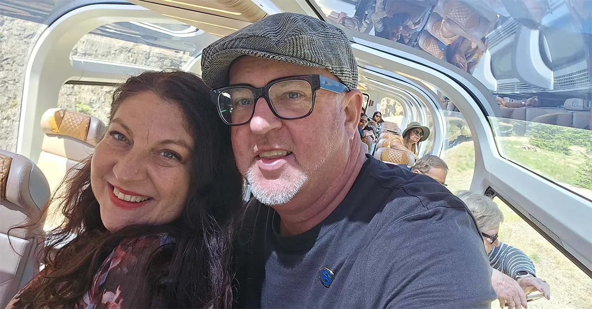 The writer and his partner on the Rocky Mountaineer. Image credit: Russell Higham