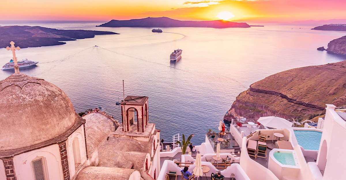 While there’s plenty of choice for food on board, when ashore, guests can enjoy leisurely meals and make the most of the ship staying in most ports until the early hours, and even in to the next day. As any seasoned cruiser knows, Santorini is a very popular island for cruise ships, and our VIP pass there includes docking in a prime position in Fira old port – while larger ships have to drop anchor further out, as is the norm in the caldera.