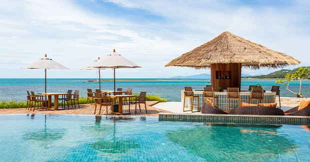 Set in a secluded cove right on the beach, the latter boasts exceptional snorkelling, with lively Lamai a short stroll away and offering a slew of bars, restaurants and shops.