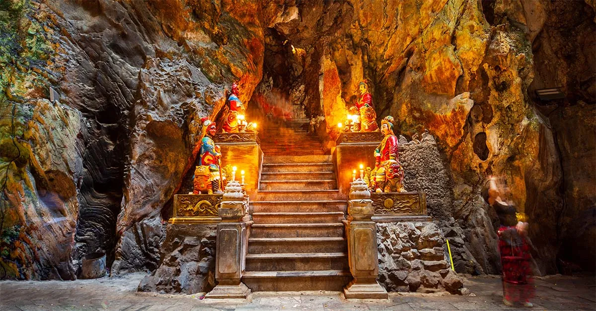 No visit to Da Nang is complete without an exploration of the Marble Mountains – five limestone peaks four miles to the south.