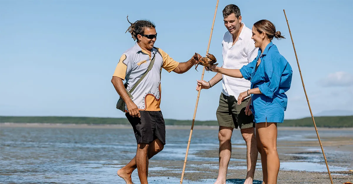 We have two tours (each can be either a half or full day): one exploring the Daintree Rainforest and the other Cape Tribulation. We’ll do lots of experiences, like teaching Aboriginal art techniques, seeing the medicinal qualities of plants or walking barefoot on the coastal flats trying to spear mud crabs (pictured).