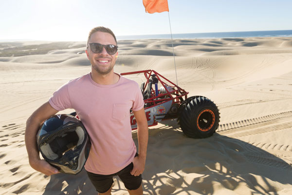 Q. Where was your photoshoot? A. We did it in the sand dunes at Pismo Beach. Even though I take the odd selfie, I'm not that bothered about pictures of myself. But the professional photographer we had was there to tell me where to stand. I wore shorts, a purple T-shirt and black high tops. I was standing by a dune buggy with my helmet off. I should have taken a mirror because my hair was all messy.