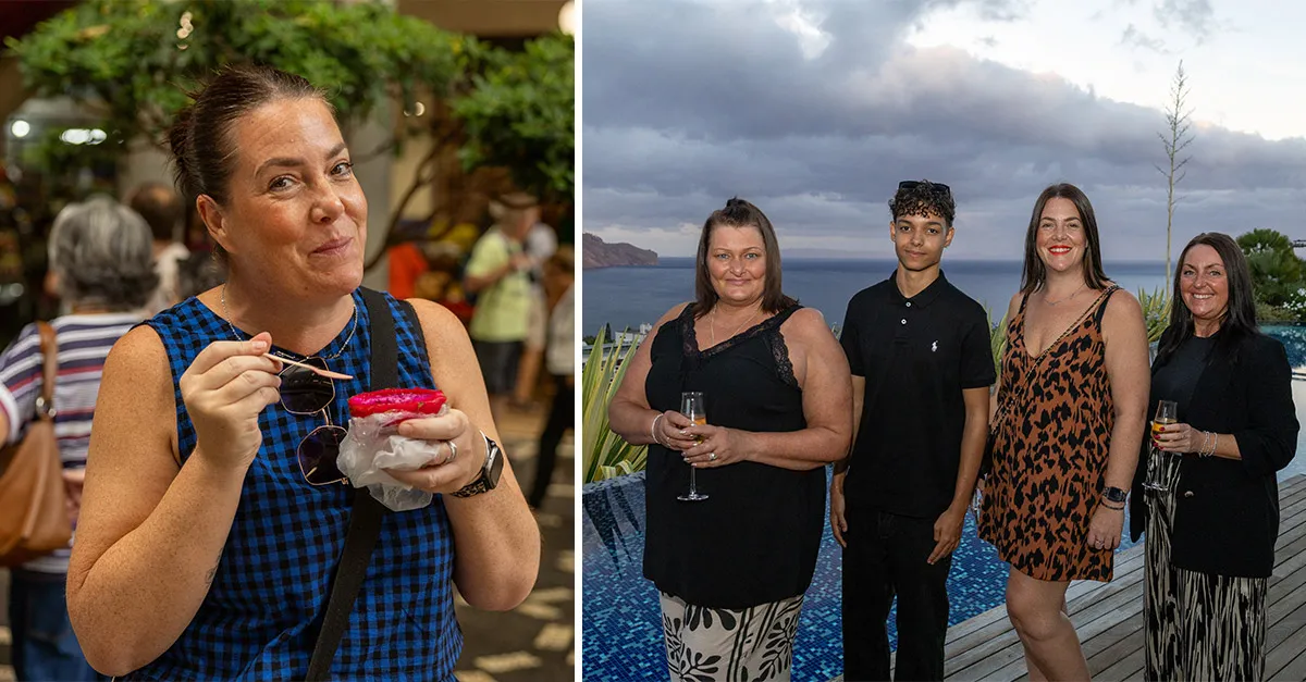 A. It’s difficult because I’ve got too many! A few of us did some wild water swimming; I was in hysterics because obviously you don’t know what’s beneath you and there were crabs and fish, so I kept screaming. The sunset cruise was a wonderful, reflective experience. We visited the city of Funchal and its fascinating food market, where I bought a pink dragon fruit to try. From there, we took the cable car up to the Monte Palace Tropical Garden. We also went on a 4x4 tour, which was fun – we stopped at a waterfall and got a video of us all singing Hold My Hand by Jess Glynne.