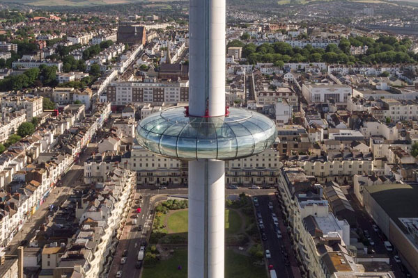 The British Airways i360 will take groups of up to 200 up to a height of 450 feet in glass viewing pod.