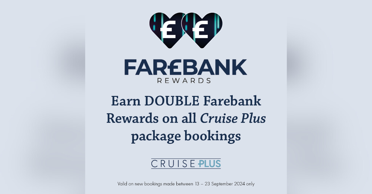 Cruise Plus, the B2B cruising brand of dnata Travel Group UK, is giving agents the chance to earn double Farebank Rewards with every booking to mark Clia’s Cruise Week.