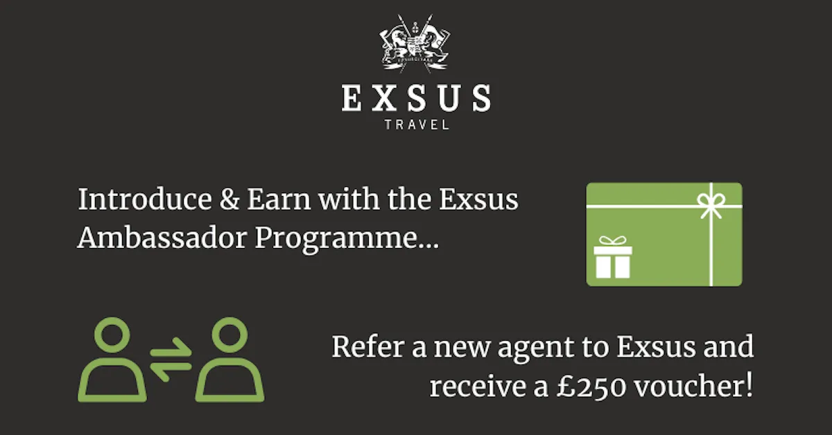 Exsus Travel has launched its Exsus Ambassador Programme, designed to reward travel agents for introducing new agent partners to the luxury tour operator.