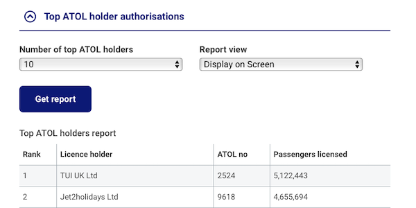 However, Tui is also licensed for more than 86,000 Atol to Atol sales through third party travel companies, giving it an overall lead of just over 553,000.