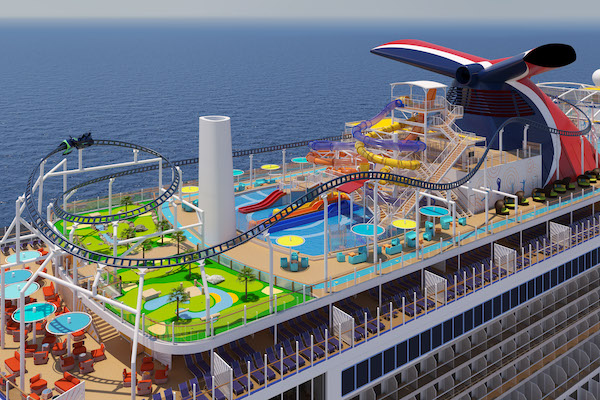 The ship will feature first roller coaster at sea. The Bolt ride will run for almost 800 feet of twists, turns and drops with riders reaching speeds of nearly 40mph.