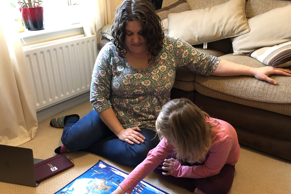 A homeworker is balancing her job with looking after her husband who has been struck down with coronavirus.