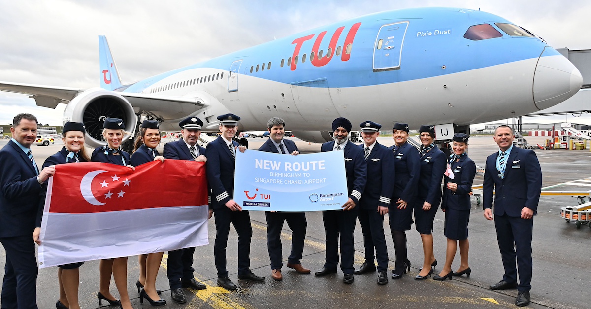 Tui Airways’ inaugural flight from Birmingham to Singapore’s Changi airport took off on Wednesday (December 13), carrying customers for sister brand Marella Cruises.