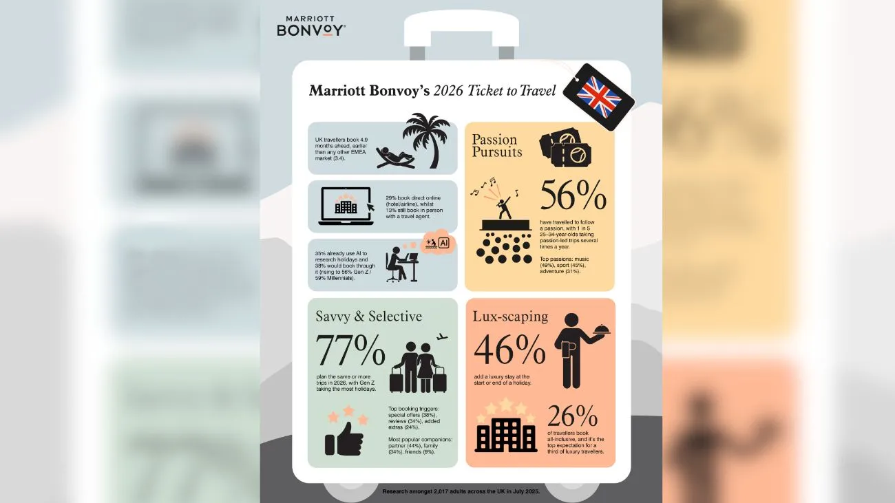 British travellers are expected to book earlier and take more trips in 2026, according to Marriott Bonvoy’s latest Ticket to Travel report.