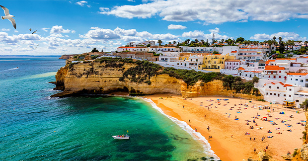 For more than 125 miles in the south of Portugal, red-hued cliffs border crystal-clear waters that are interspersed with rocky coves and golden sands. And it’s not just the unspoilt coastline that makes the Algarve a wish-list destination for couples – fascinating history and charming, white-walled towns only add to the allure.