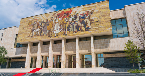I’m here a day earlier than the rest of the Intrepid group, so I have the chance to explore the monumental Skanderbeg Square, become acquainted with Albanian history at the National Museum and catch the sunset from the Pyramid of Tirana before the others arrive.