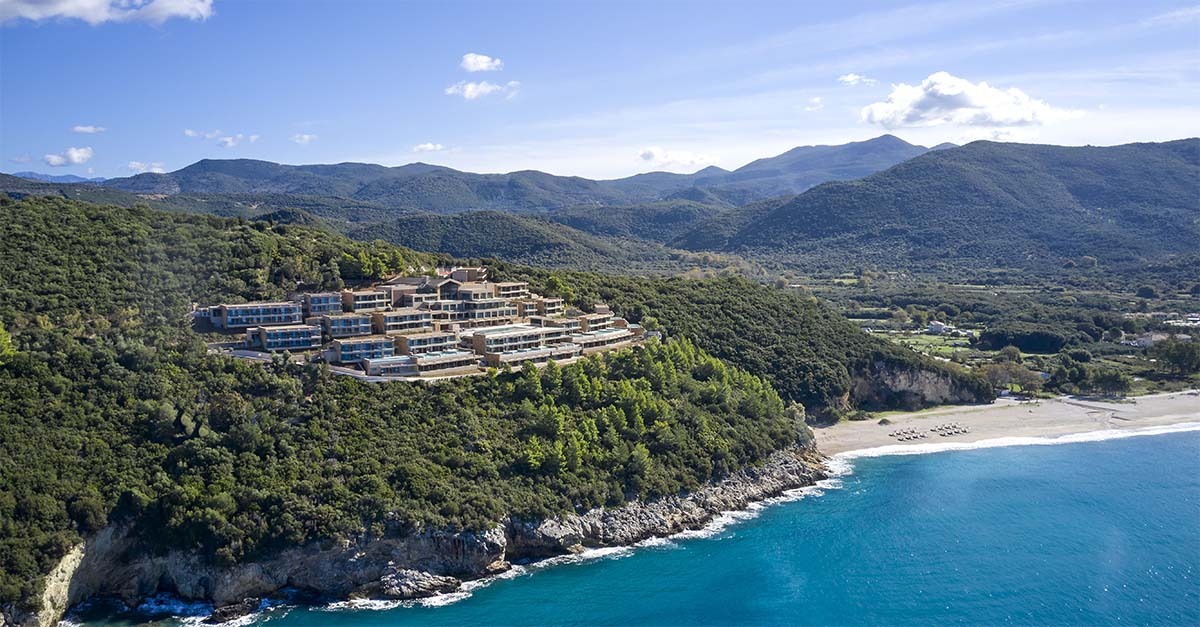 For the utmost luxury, families can check in to a suite with a private pool, overlooking Karavostasi beach – or ride the hotel’s private funicular directly to the shoreline to dip their toes in the ocean. If they’re staying in a suite, the all-inclusive package features a complimentary 25-minute massage, a wine-tasting experience and a two-hour bike tour.