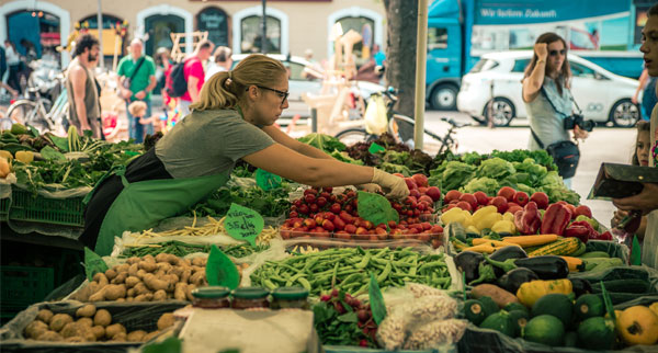 “A riot of colourful flowers, fruits and vegetables fill the outdoor square, while the covered market is the place to pick up local cheeses, fresh-baked pastries and cured meats.”