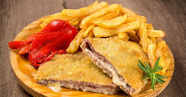 Forget tiny tapas – with farming folk to feed and chillier temperatures to contend with, Asturias excels in rich, warming stews and hearty dishes such as pote asturiano (bean stew with cabbage and potato), cachopo (a breaded veal fillet stuffed with cheese and ham, pictured), pitu de caleya (traditional free-range chicken) – and of course the region’s most famous dish, fabada.