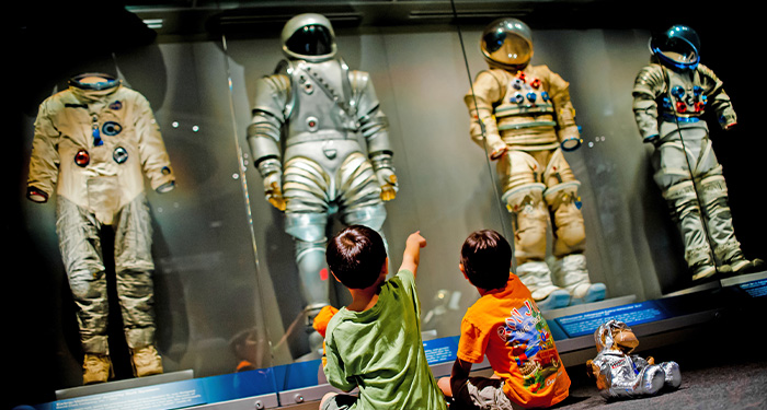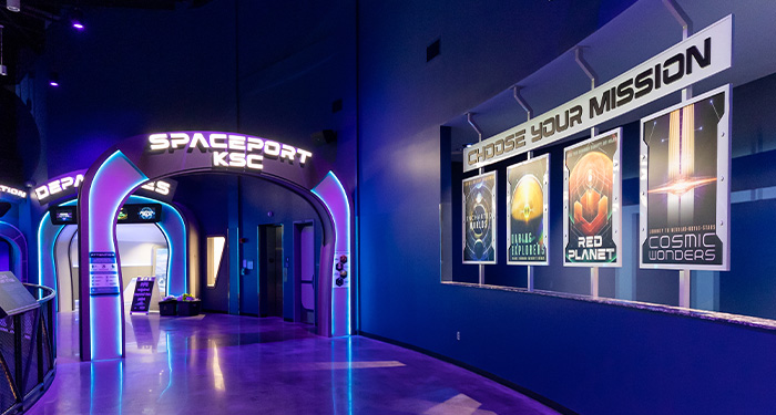 As you enter Gateway, you won’t miss the huge SpaceX booster, which is suspended above. You can learn all about the rockets currently going into space and look closely at this Falcon 9 booster, which has flown into orbit twice.