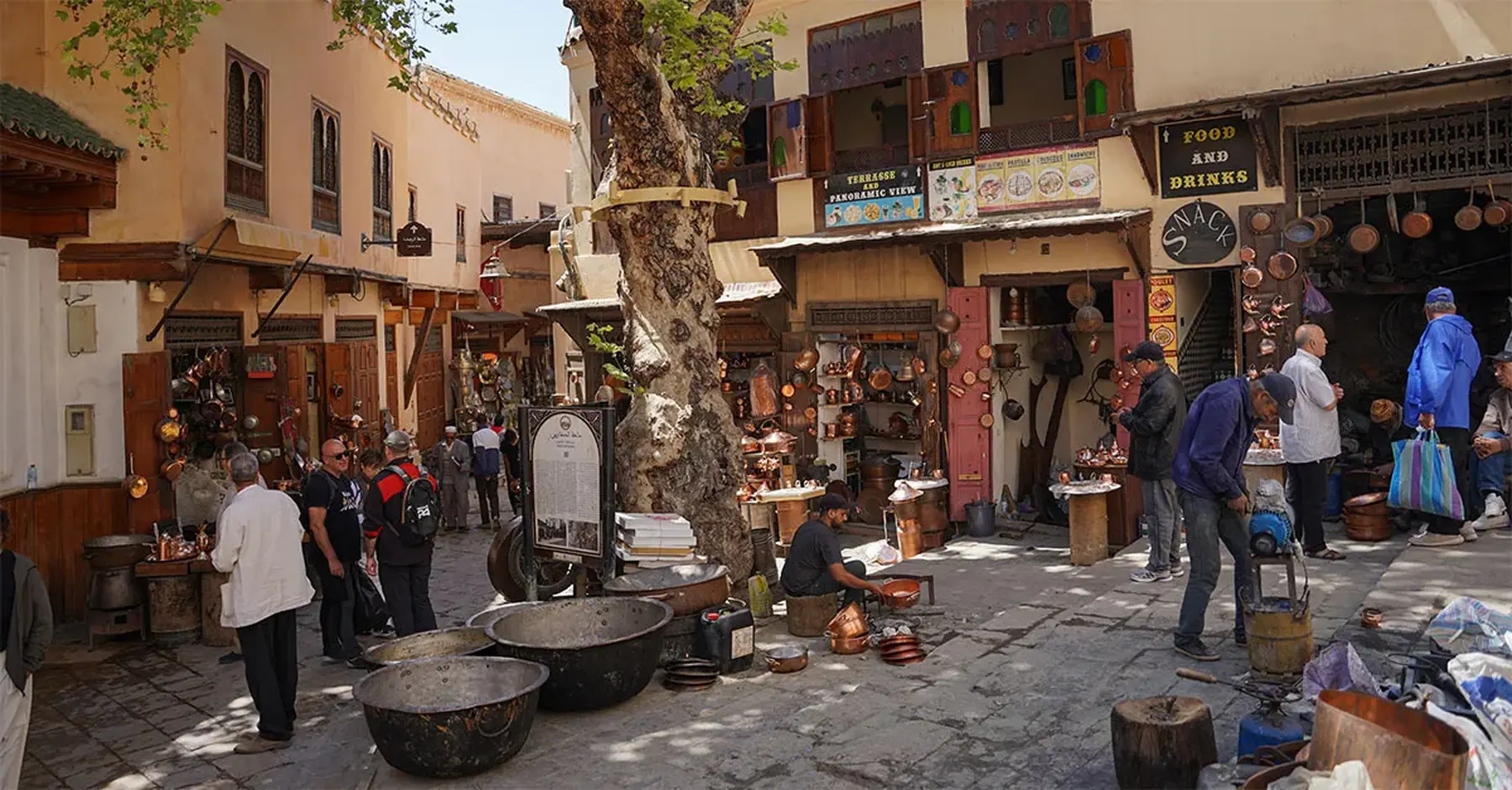 From here, we travelled on to Fez, via Rabat and the Unesco-listed Roman ruins in Volubilis. The medina in Fez is far less crowded than its counterpart in Marrakech, and remains focused on industry and Chefchaouen craftsmanship, with copper pots beaten in the sun and indigo dyers dipping jeans and shirts to restore them to vibrant shades of blue.