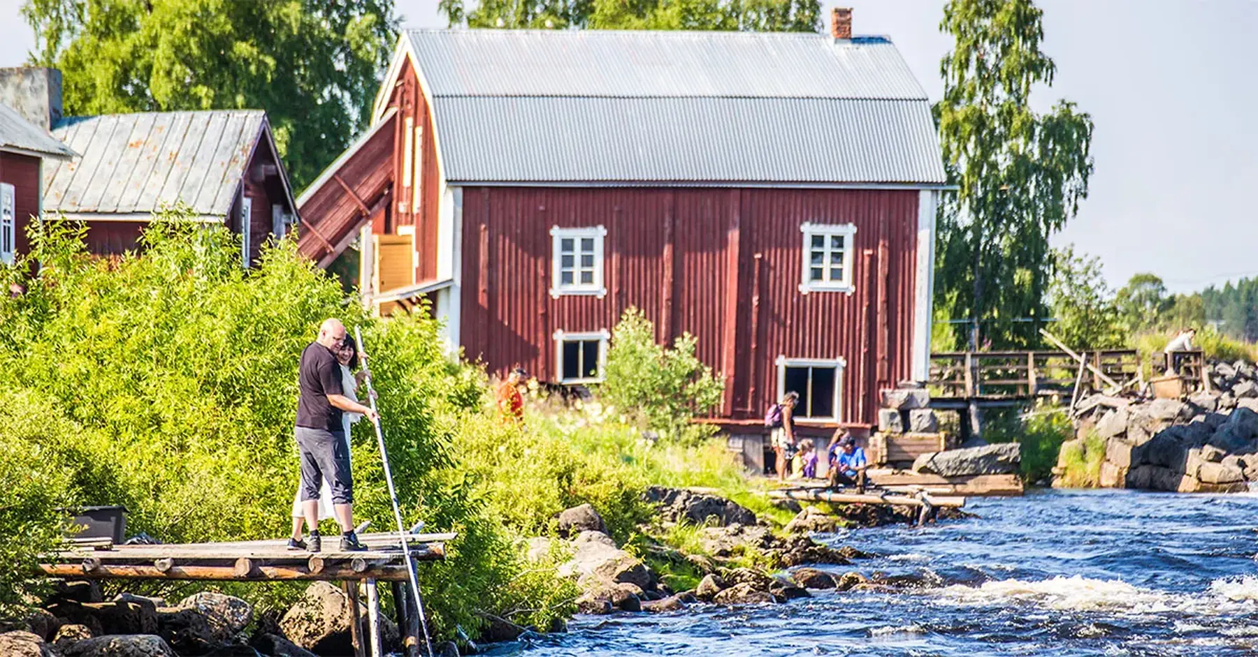Standing on the edge of a wooden pier over the Torne River, I pull the large fishing net out of the fast-flowing water – and it’s empty again. I’m trying to catch a fish in the traditional way – using a large net on the end of a long pole that reaches far beyond the riverbank.