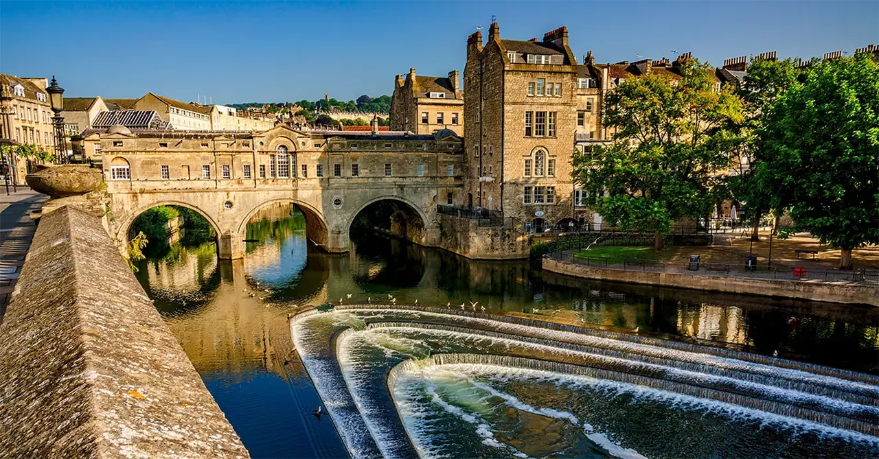 Bath’s answer to Florence’s Ponte Vecchio is Pulteney Bridge (pictured main), a 45-metre Avon crossing constructed in the 1770s. It is one of only four bridges in the world to have shops across its full span on both sides, from florists to jewellery boutiques. Clients can enjoy a coffee and a slice of crumbly cake in one of its two cafes, each with a view of the river rushing over the horseshoe-shaped weir.