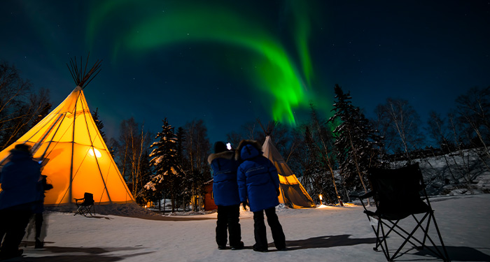 Parts of this territory have up to 240 nights of visibility a year, meaning clients have a great chance of catching the northern lights. The capital Yellowknife is home to the Aurora Village, where guests can keep warm in one of 21 traditional tipis or on heated seats at dedicated viewpoints as they watch the lights glow over a frozen lake.