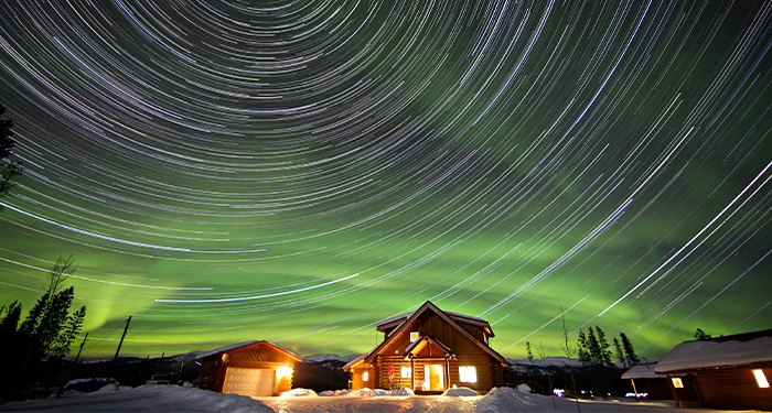 For those who’d prefer to stay at a resort to watch the northern lights, Blachford Lake Lodge offers cabin accommodation (complete with extra-large windows) alongside a host of night-time activities. These include an outdoor hot tub and wide decks for aurora viewings, igloo-building sessions and photography classes to help with capturing that perfect picture of the night sky.