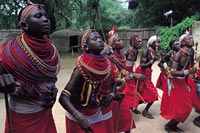 Kenyans like to celebrate, and the music style known as benga, which came on the scene in the 1970s, is the modern dance music that is most popular. It originated in the 1950s among the Luo people of western Kenya, who took dance rhythms traditionally associated with the lyre and adapted them to the acoustic guitar. Homemade drums and guitars are commonly used to accompany dancing in rural areas. The guitar, originally played in the late 19th century by freed slaves near Mombasa, is the single most important instrument and is a common element in modern Kenyan pop styles. __________ | ||||
